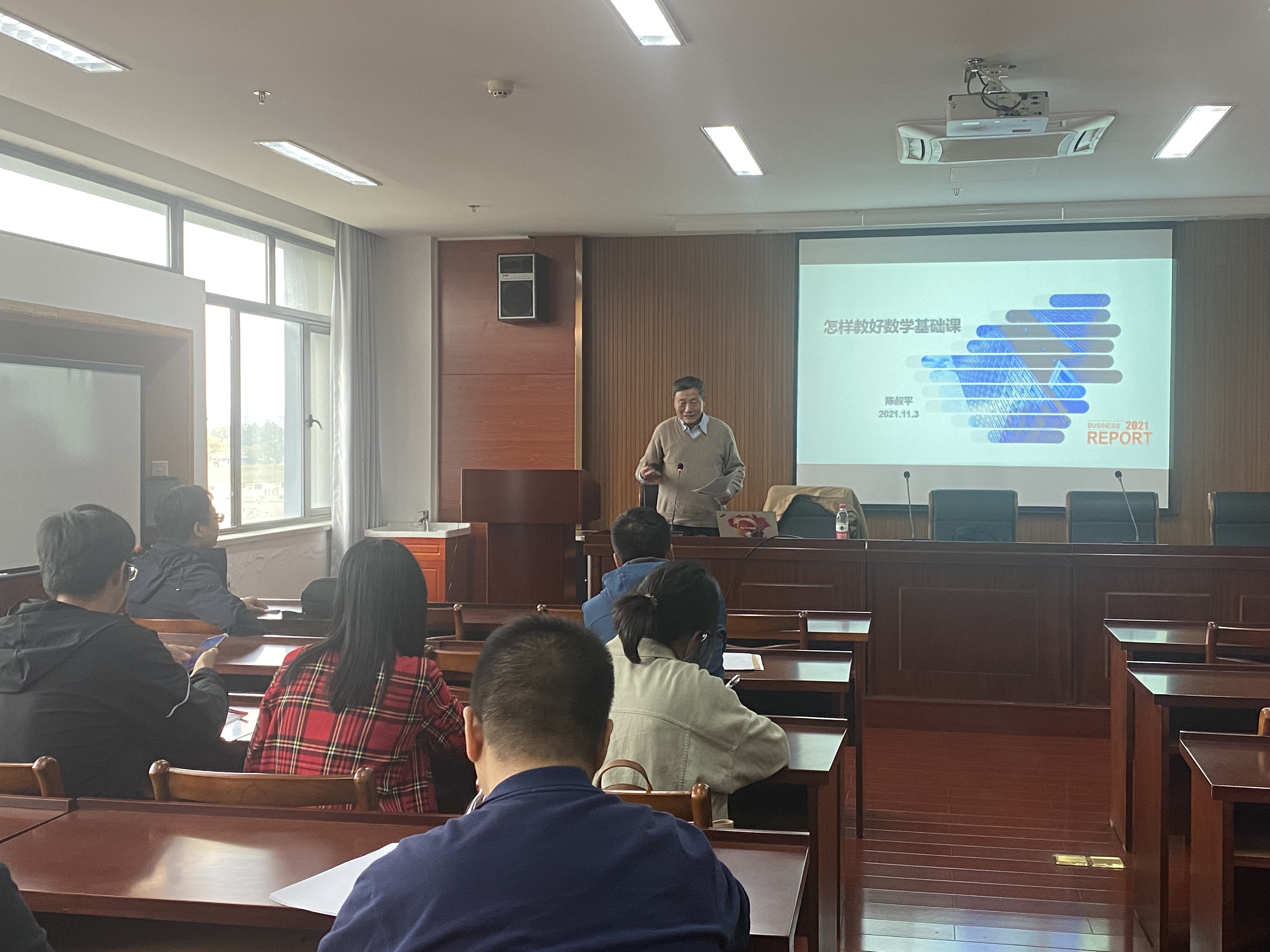 学期过半,为更好地总结教学经验,分享教学心得,做好期中教学检查,11月3日下午,电子竞技博彩 举行期中教研活动。特邀贵州大学原校长陈叔平教授来学院,为教师们作了题为“怎样教好数学基础课”的主题讲座。电子竞技博彩 副院长虞旦盛主持会议,副院长何济位出席教研活动。
