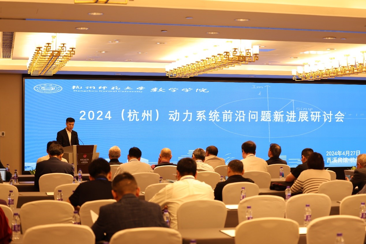2024年4月26日-28日,电子竞技博彩 在杭州举办2024(杭州)动力系统前沿问题新进展学术研讨会,来自中科大、上海交大、四川大学、华东师大等多所985高校的20余名国家级人才,多位资深专家、青年学者和电子竞技博彩 师生代表约90人参加研讨会。黄兆信副校长出席会议并致辞。