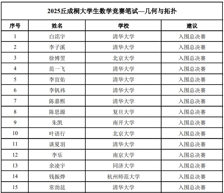 竞赛背景:丘成桐大学生数学竞赛2010年由丘成桐院士发起设立。竞赛侧重从几何与拓扑,代数、数论与组合,概率与统计,应用与计算数学,分析与偏微分方程,数学物理等6个方向全面考查学生在本科阶段的数学基本知识与基本功,按照国外一流大学的研究生资格考试标准选拔优秀数学人才,旨在激励广大学子在数学基础知识、综合能力及学术修养方面全面进步,助力中国大学数学教育发展。竞赛设立至今,累计中国内地、香港和台湾地区大学25000余名大学生报名参加比赛,获得奖励学生980余名。丘成桐大学生数学竞赛在培养中国数学人才方面发挥了重要作用,已经成为发掘和选拔年轻数学人才和国内外知名大学数学及相关专业研究生录取的重要参考。
